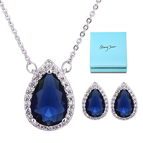 Tiffany Blue Gift Pack: Wrapped in a fashion gift box. Two piece jewelry set includes pendant necklace and stud earrings with halo-framed pear cut 5D Cubic Zirconia stones. Two pair of earring backs are included for free. Perfect gift idea.