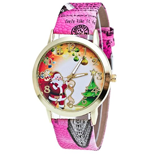 -. Title : Damen Uhr, OverDose Christmas Weihnachten Ältere und Baum-Muster-Leder-Band-Analog-Quarz-Mode-Uhren (Hot Pink)