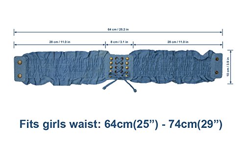 SIZE (APPROX.) - Total length (without stretching): 25 in (64 cm), fits girls' waist from 25 in (64 cm) to 29 in (74 cm). Belt width: 3.9 in (10 cm). Weight: 2.0 oz. (57.5 g)