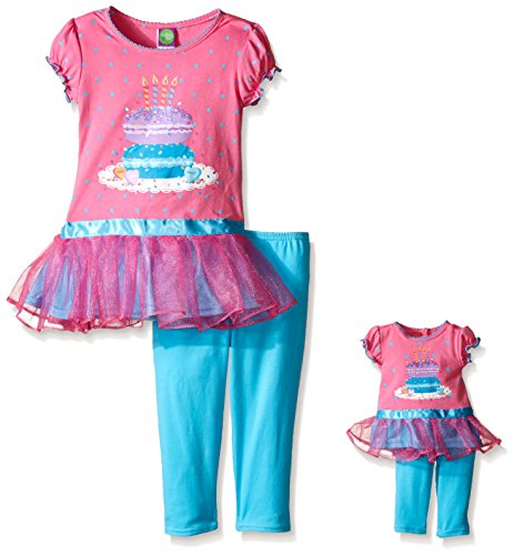 Dollie & Me birthday cake knit-to-mesh tutu dress with legging and matching doll outfit