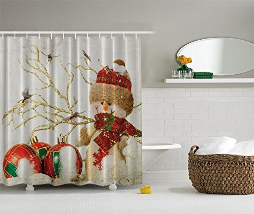 Ambesonne Winter Holiday Snowman Polyster 69-Inch-by-70-Inch Shower Curtain, Red / White / Green / Gold / Khaki