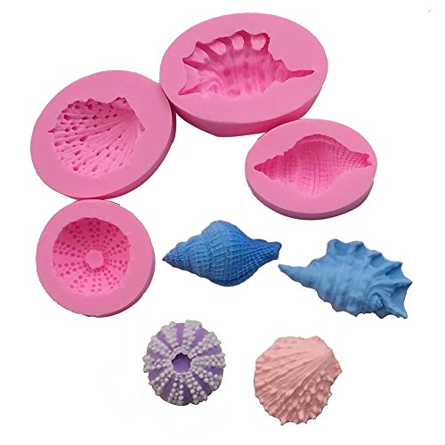 Sharlity 4Pcs Shell and Conch Craft Art Silicone Sugar turnover Cake Decorating Cupcakes Sugarcraft and Candies mould Craft Molds DIY
