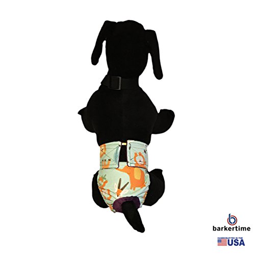 (Barkertime)/Pet Supplies/Litter Housebreaking/DIRECT FROM USA/Dog Diaper Overall - Made in USA - Forest Buddies on Teal Escape-Proof Washable Dog Diaper Over...