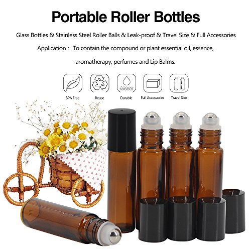 - ★BPA FREE & THICK GLASS: 12pc 10ml amber thick strong glass roller bottles with stainless steel roller balls and full accessories, which is BPA free, refillable, durable, economic, easy to use.