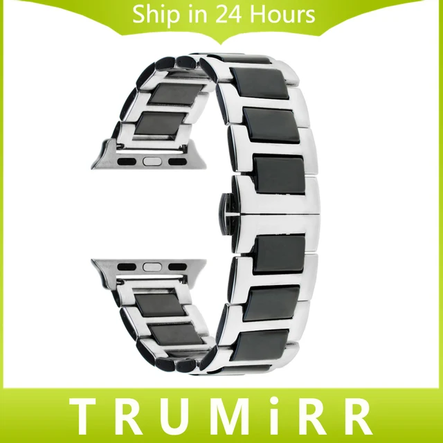 | [해외] 세라믹 및 스테인레스 스틸 손목 + 어댑터 38 미리메터 42 미리메터 iwatch apple watch 밴드 손목 스트랩 링크 팔찌 블랙 골드 실버 |