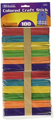 BAZIC Colored Craft Sticks, Assorted, 100 Per Pack