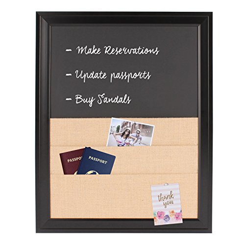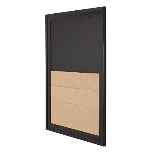 DesignOvation 209402 Bosc Framed Combination Magnetic Chalkboard and Burlap Pockets Wall Board, Black