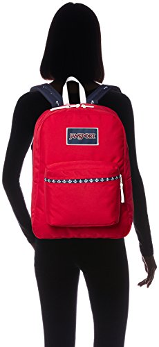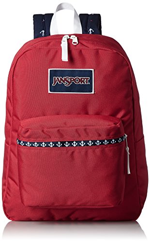 -. Title : JanSport Womens Classic Mainstream High Stakes Backpack - Red Tape/Land Ahoy / 16.7"H X 13"W X 8.5"D