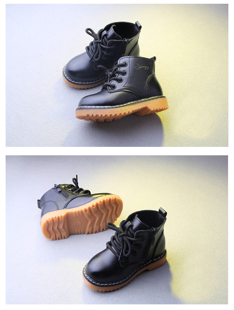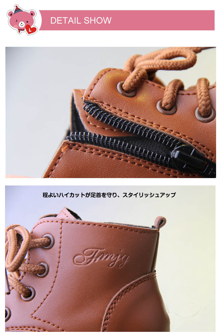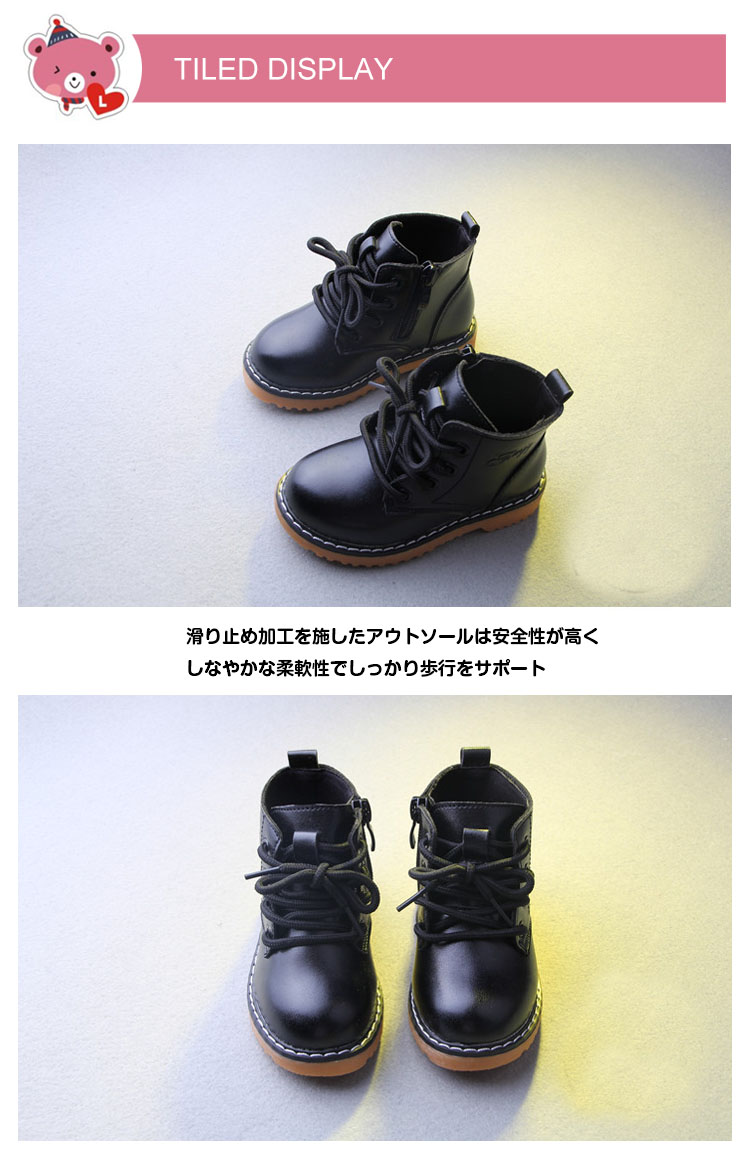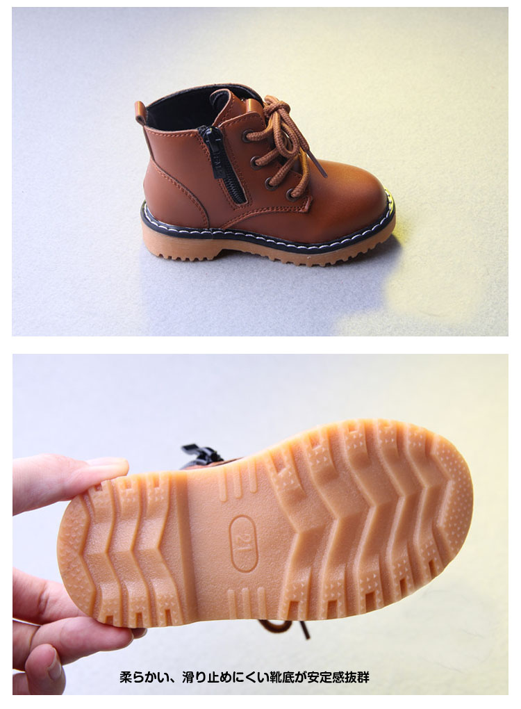 | シンプルで格好いいマーチンタイプのお洒落なレースアップブーツ艶感のある上品なレザーを使用し、光加減によって表情が変わります男女兼用 男の子はもちろん、女の子が履いてもクールで格好いい内側がファスナーが付いているので、脱ぎ履きラクラク滑り止め加工を施したアウトソールは安全性が高くしなやかな柔軟性でしっかり歩行をサポート冬防寒対策として、裏ボアタイプもご用意いたしました是非お試してください | |