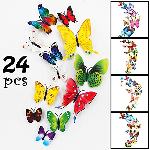 LimBridge 24 Pack Butterfly Refrigerator Magnets, 3D Funny Fridge Magnets, Removable DIY Butterflies Wall Stickers