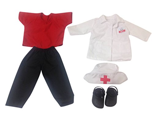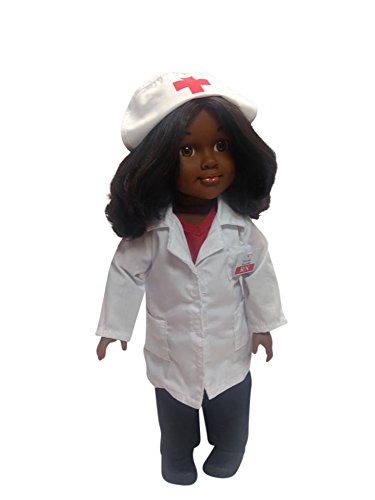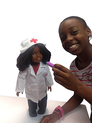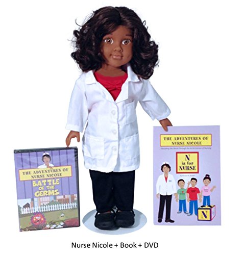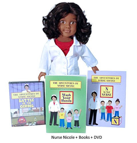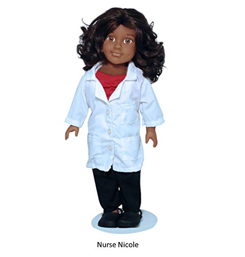 Nurse Nicole Doll is a doll that provides a positive role model of nursing to the world. Included is a nurse ID badge, white lab coat, red scrub top and black pants. Also, a white nurse's cap with a red cross and a pair of black crocs are on the doll. This doll is an 18 inch doll with the body style that will fit American Girl Doll clothes. Consider adding the Nurse Books and DVD to this purchase to enhance the learning of nursing and a STEM- health career. Inspire your child to pursue the #1 Health STEM Career of Nursing. The Nurse Nicole Doll is a great teaching aid for educators on healthcare professional careers. For those who are nurses or health professionals, this could be away to show your child what nurses do. Coming soon are more 18 inch doll clothes and accessories.Feature