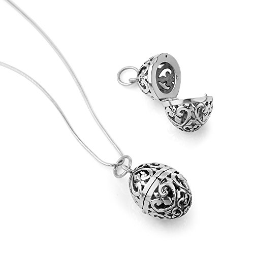 This beautiful Filigree Egg Prayer box necklace would be a wonderful addition to any wardrobe. The included black velvet pouch makes it a perfect gift for any special occasion. Made from nickel free 925 sterling silver with stamp 925, oxidized finish for antique look. The pendant comes with the 925 oxidized sterling silver snake chain 18'', spring ring clasp. Light weight and antique detailed design. Perfect to keep photographer, aromatherapy oil or give to someone special.