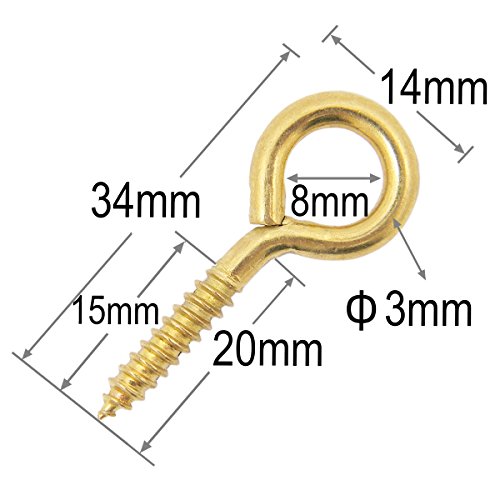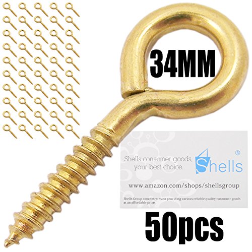 Shells 50PCS Gold Color Copper Plated Metal Cup Hooks Eye Shape Screw Hooks Self-tapping Screws Hooks Ring 34mm 6#