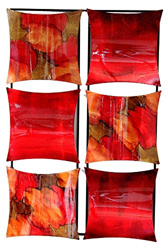 Heather Ann Creations 6 Square Panel Decorative Metal Wall Accent Art, 16" x 25" x 2", Metal with Foil, Drip and Lacquer Finish in Copper, Brown and Red