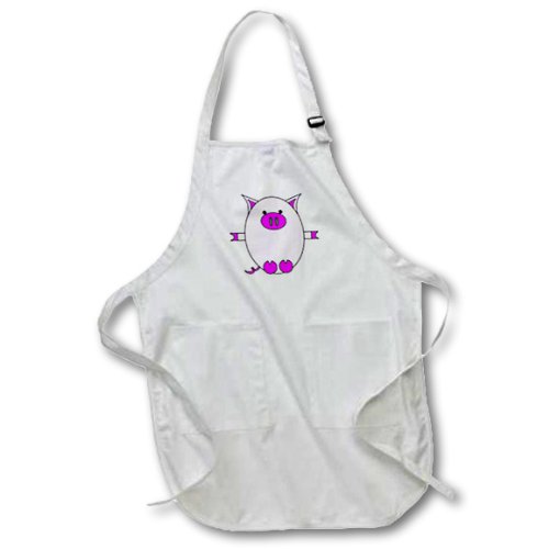 3dRose apr_6370_1 Piggy Power Purple Stripes Full Length Apron with Pockets, 22 by 30-Inch, White