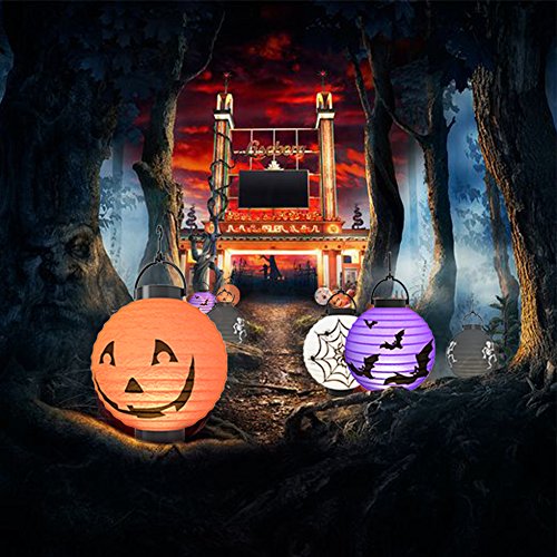 Halloween Pumpkin Lantern - Jack o Lantern [4 Pack]LED Pumpkin Spider Bat Skeleton Light - Halloween Indoor Outdoor Holiday Party Decor Paper Lantern