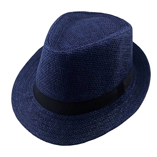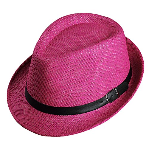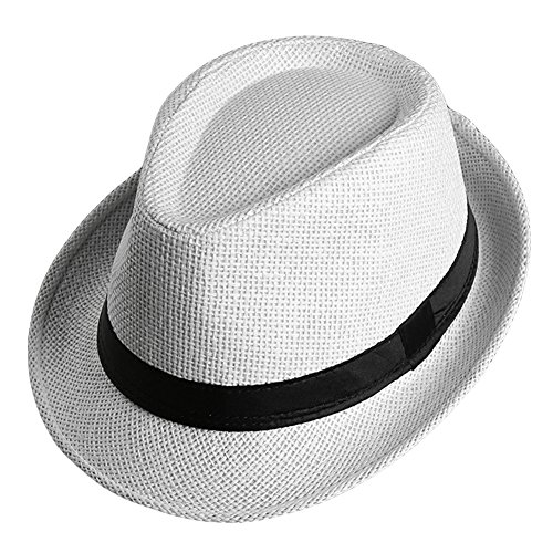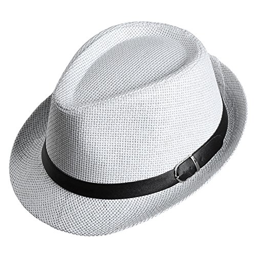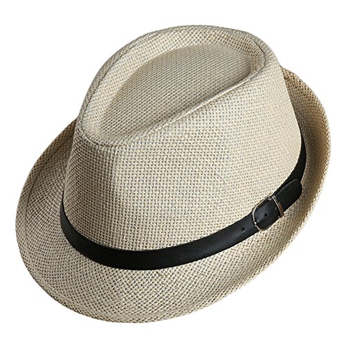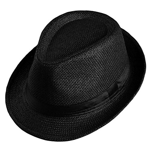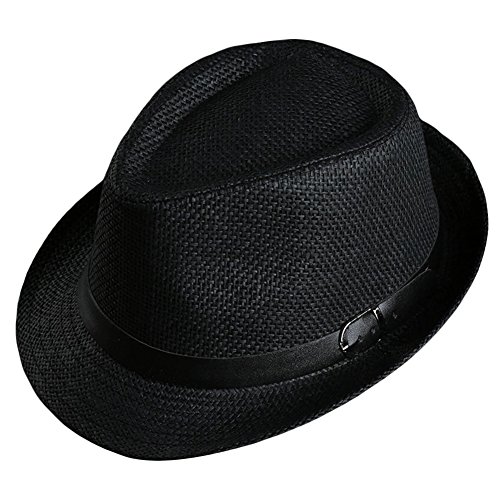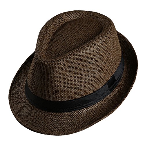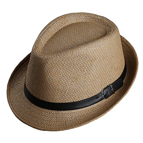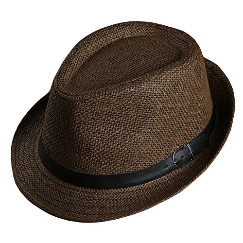 | LOCOMO Men Women Straw Trilby Hat Fedora Short Upturn Brim FFH391BE1 |