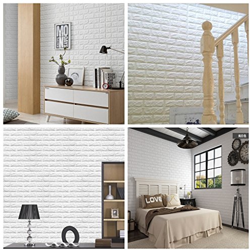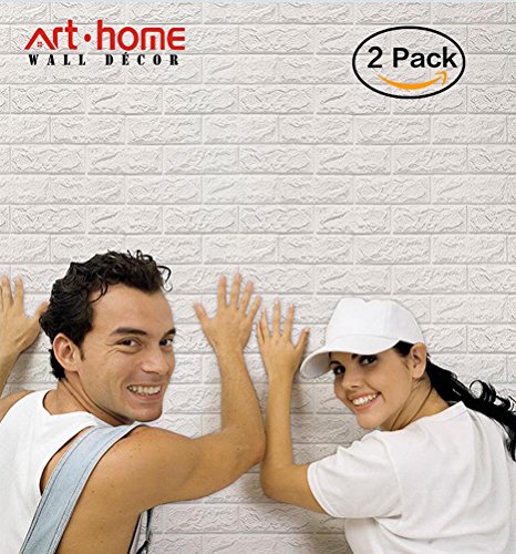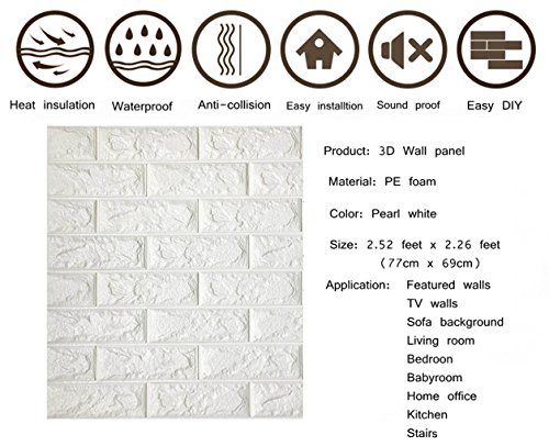 - ✔ 2 Pack white wall panels brick design PE foam wall panel tiles, unit size: 2.52ft x 2.26ft (77cm x 69cm), covers more than 11 Square Feet