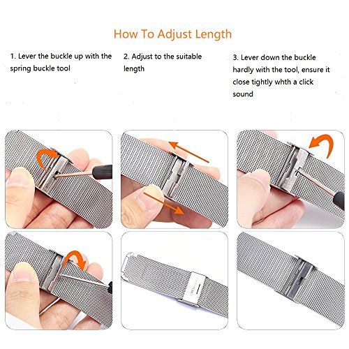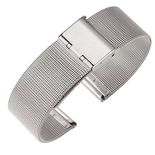 -. Feature : Compatible with any traditional or smart watch that uses 18/20/22mm spring bars. It is important that your watch's lug width is the exact width of the band you select or spring bars will not fit correctly. / Integrated quick release spring bars allow you to swap straps in a flash, without using any tools. Approximately 7.67" total length when not attached to watch, this model is designed to fit wrists from 4.7" to 7.6" / Made of premium solid stainless steel, under processing of fine grinding and polishing, the strap is tight and durable. / Fitted with a fold-over clasp that is very easy to adjust to a range of sizes to suit your wrist, comfortable to wear. / WARRANTY - 100% satisfaction guaranteed. If you are not satisfied with the product, simply reach out to us via an Amazon message. We'd like to offer you a replacement or full refund without any question.