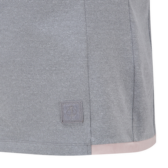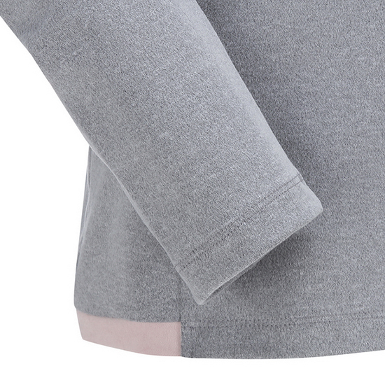 - 부분 배색 패치를 적용한 여성 티셔츠.