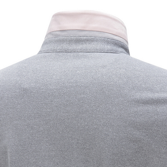 - 슬림 카라 디자인에 반버튼 여밈으로 단정함.