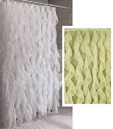 Cascade Shabby Chic Ruffled Sheer Shower Curtain (Moss)