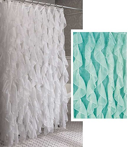 Cascade Shabby Chic Ruffled Sheer Shower Curtain (Sea)