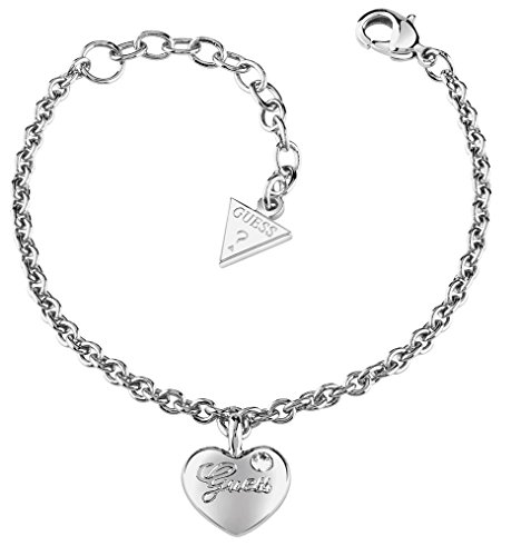 The iconic Guess heart theme is evident once more in this collection. "Heartbeat" is a perfect everyday finishing touch with jeans and casual outfits, to show off the shape of your heart. Rhodium-plated bracelet.Feature