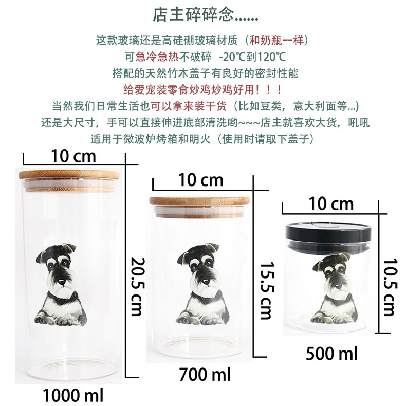 雪纳瑞系列咖啡豆密封罐无铅广口玻璃瓶咖啡粉食品宠物零食储物罐