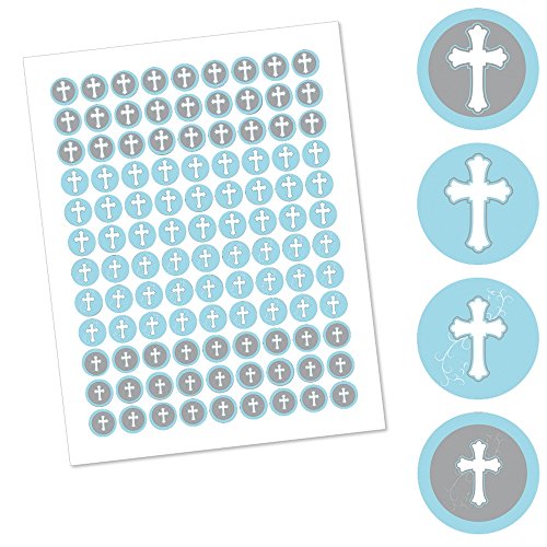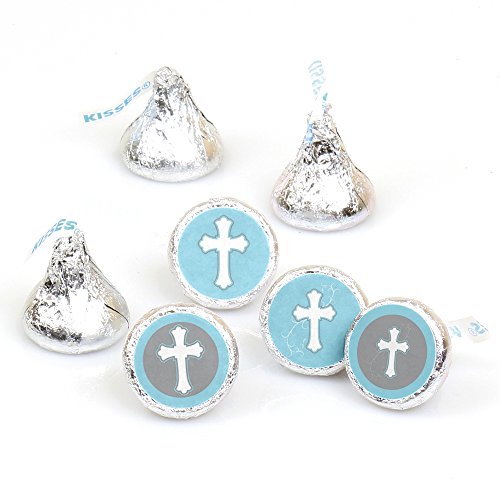 Little Miracle Boy Blue & Gray Cross - Party Round Candy Sticker Favors – Labels Fit Hershey’s Kisses (1 sheet of 108)