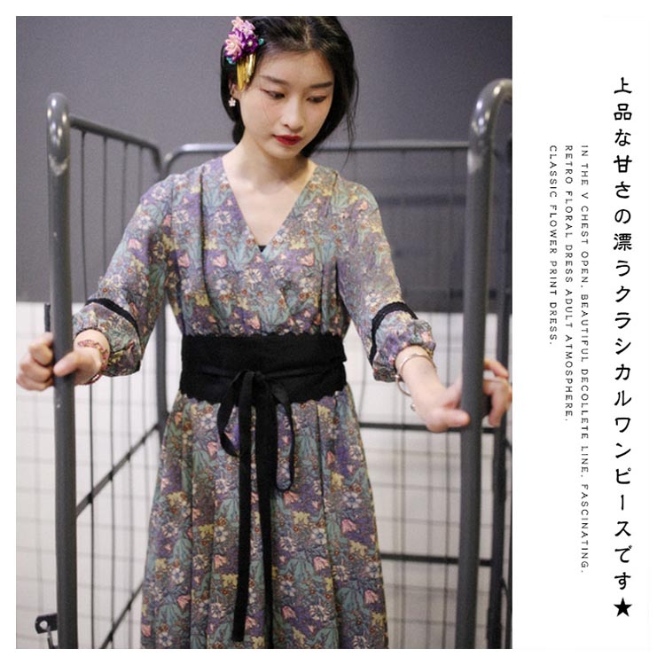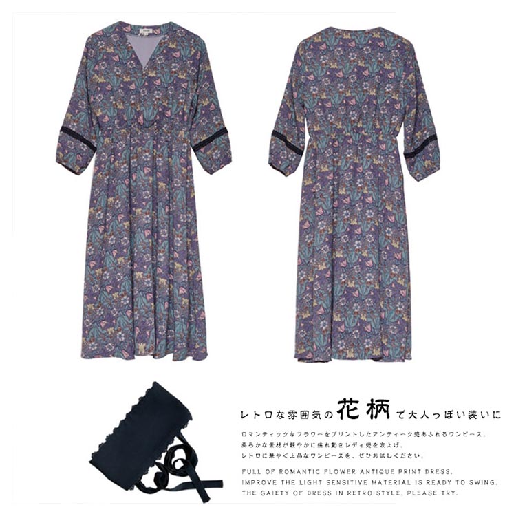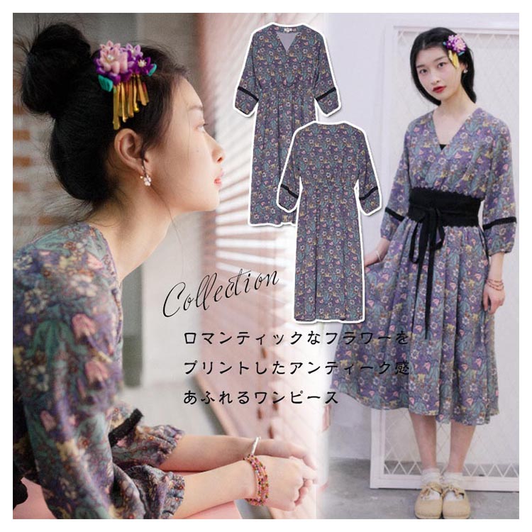 | ロマンティックなフラワーをプリントしたアンティーク感あふれるワンピース。 柔らかな素材が軽やかに揺れ動きレディ感を底上げ。レトロに華やぐ上品なワンピースを、ぜひお試しください。 | |