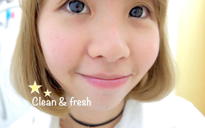 Tadah, we have the clean face now, without the tightness of skin. How fresh! :3 I love the cleanser so much as it really clean away all the oil and dirt on my face without feeling tightness of skin. My face was so soft and smooth after cleansing.