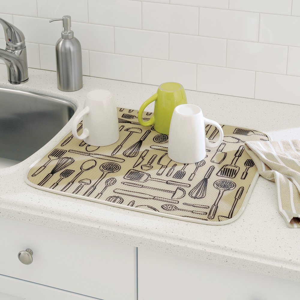 InterDesign iDry Microfiber Dish Drying Mat 18-Inch by 16-Inch Wheat/Ivory