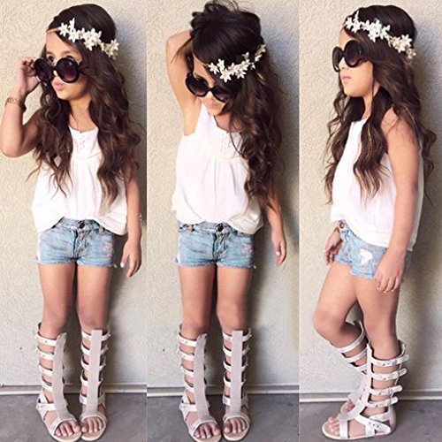 -. Title : Allywit 2pcs Kids Baby Girls Outfits Set Tank Top T-shirt Dress+Jeans Pants Clothes 2-7Y