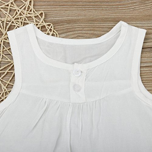 -. Feature : Gender:Girl . Clothing Length:Regular . Pattern Type:Solid / Decoration: Button . Sleeve Style:Regular / Style:Cute . Material:Cotton Blended Denim / Collar:O-Collar . Sleeve Length:Sleeveless / NOTE: Please compare the detail sizes with yours before you buy!!! Use similar clothing to compare with the size.