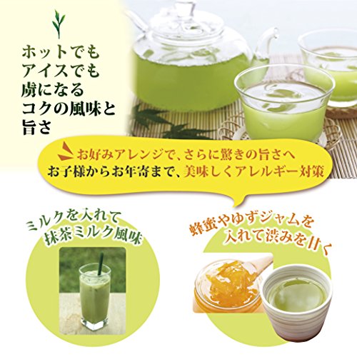 お勧めの飲み方:ホットでもアイスでも美味しい。苦みが苦手な方は、ミルクを入れて抹茶ミルク風味にしたり、蜂蜜で甘く。
