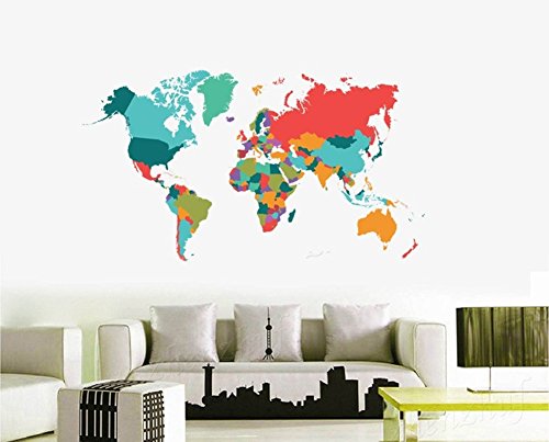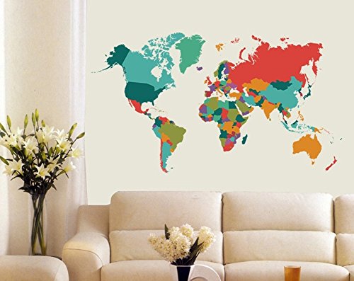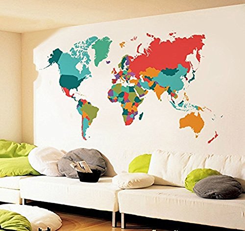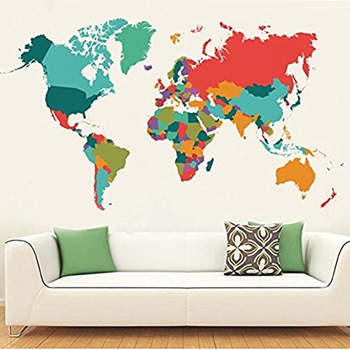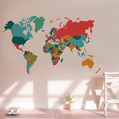 -. Title : Colourful World Map Peel and Stick Removable Wall Art Decal Sticker Decor Mural DIY Vinyl