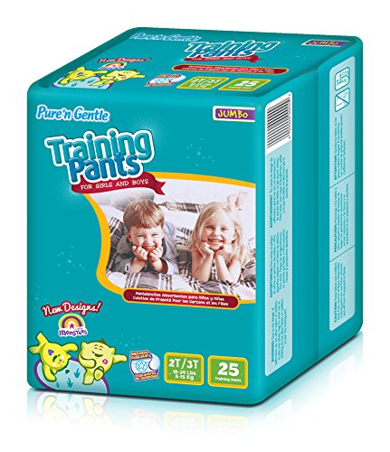 ReleaseDate : 2015-01-20 Studio : Pure 'n Gentle Publisher : Pure 'n Gentle Binding : Health and Beauty Product Description Pure N Gentle's premium training pants are designed to help ease the transition from diapers to using the potty. These diapers are shaped to feel and fit more like real underwear, with colorful graphics that gets kids more interested in the process. Pure N Gentle training pants have soft, stretchy, breathable side panels to provide extra comfort, with tear away seams for easy removal. An ultra soft cover and a custom layer underneath work together to provide superior dryness. Advanced absorbent core offers high performance super-absorbency. Dual leg cuffs help prevent leakage around the legs. 0