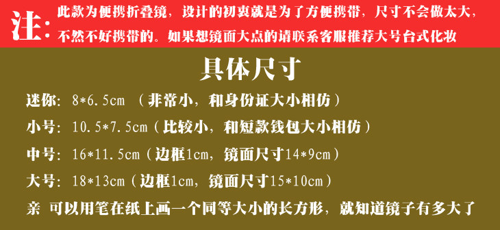 大号:18*13cm(边框1cm,镜面尺寸15*10cm