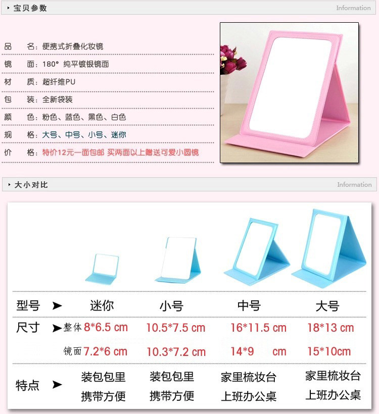 中号:16*11.5cm(边框1cm,镜面尺寸14*9cm