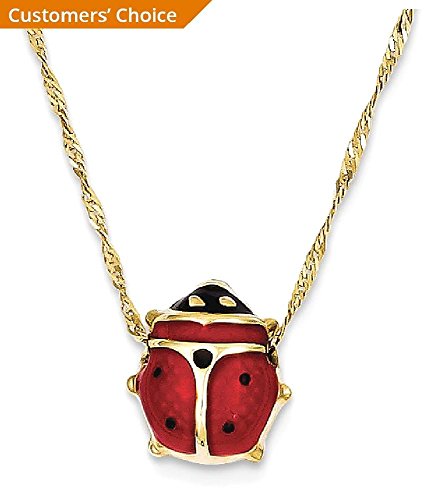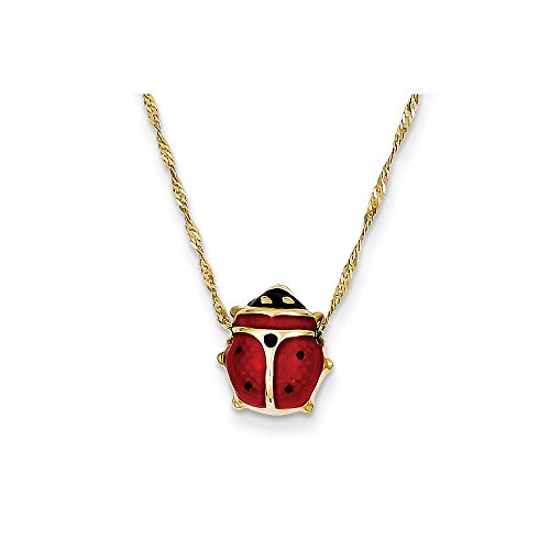 ICECARATS DESIGNER JEWELRY 14K YELLOW GOLD ENAMELED LADYBUG CHAIN NECKLACE