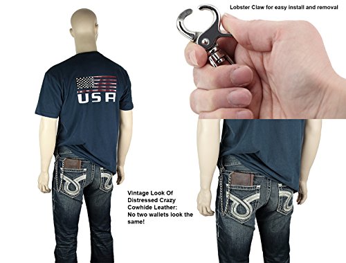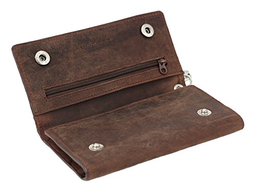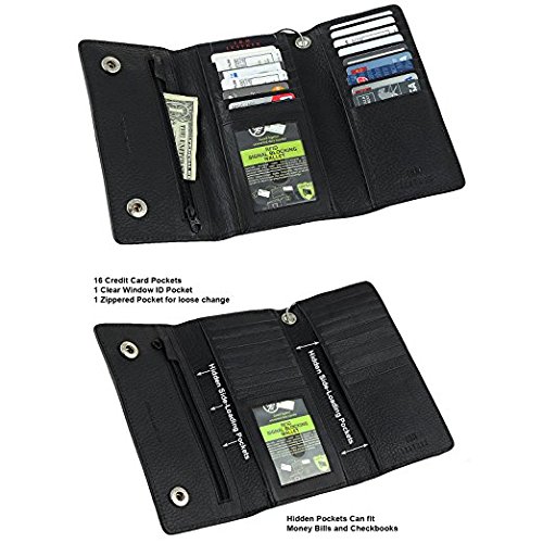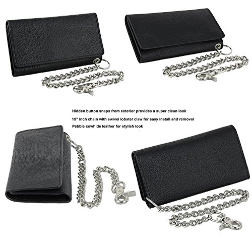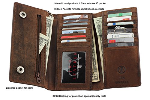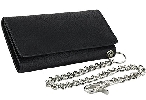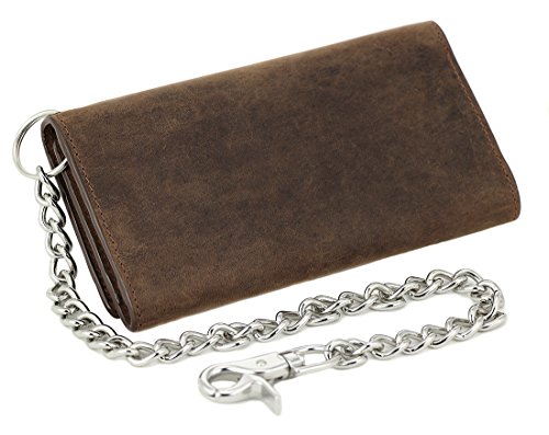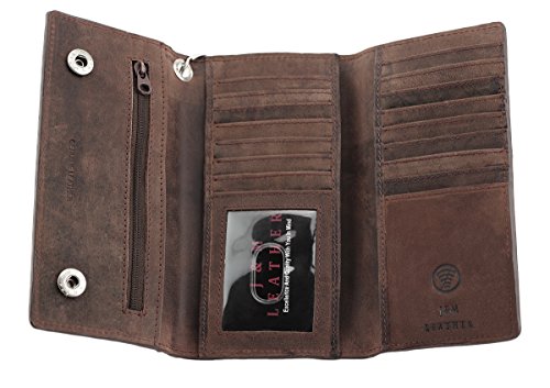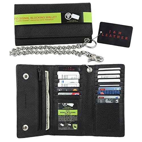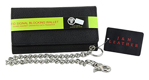 -. Title : Mens J&M Leather 7" Inch RFID Blocking Leather Trucker Biker 21 Pocket Long Trifold Chain Wallet