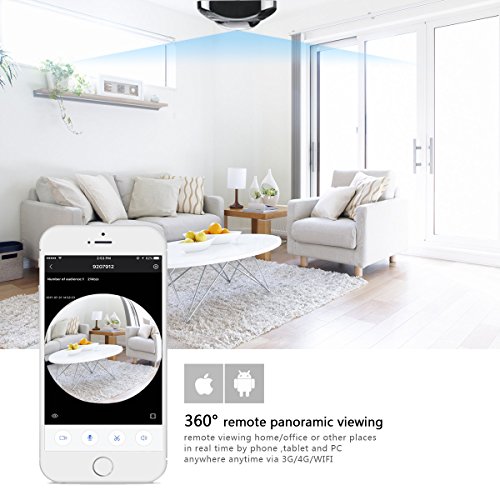 【Fish Eye Panoramic Review】: 360 degree fisheye Wi-Fi IP camera without blind spots. The camera keeps an eye on every corner in your home/store/office, never miss anything happened in the monitoring area. one is enough for your home security.