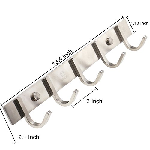 5 Hooks Stainless Steel Wall Mounted Coat Rack, Brushed Finish
