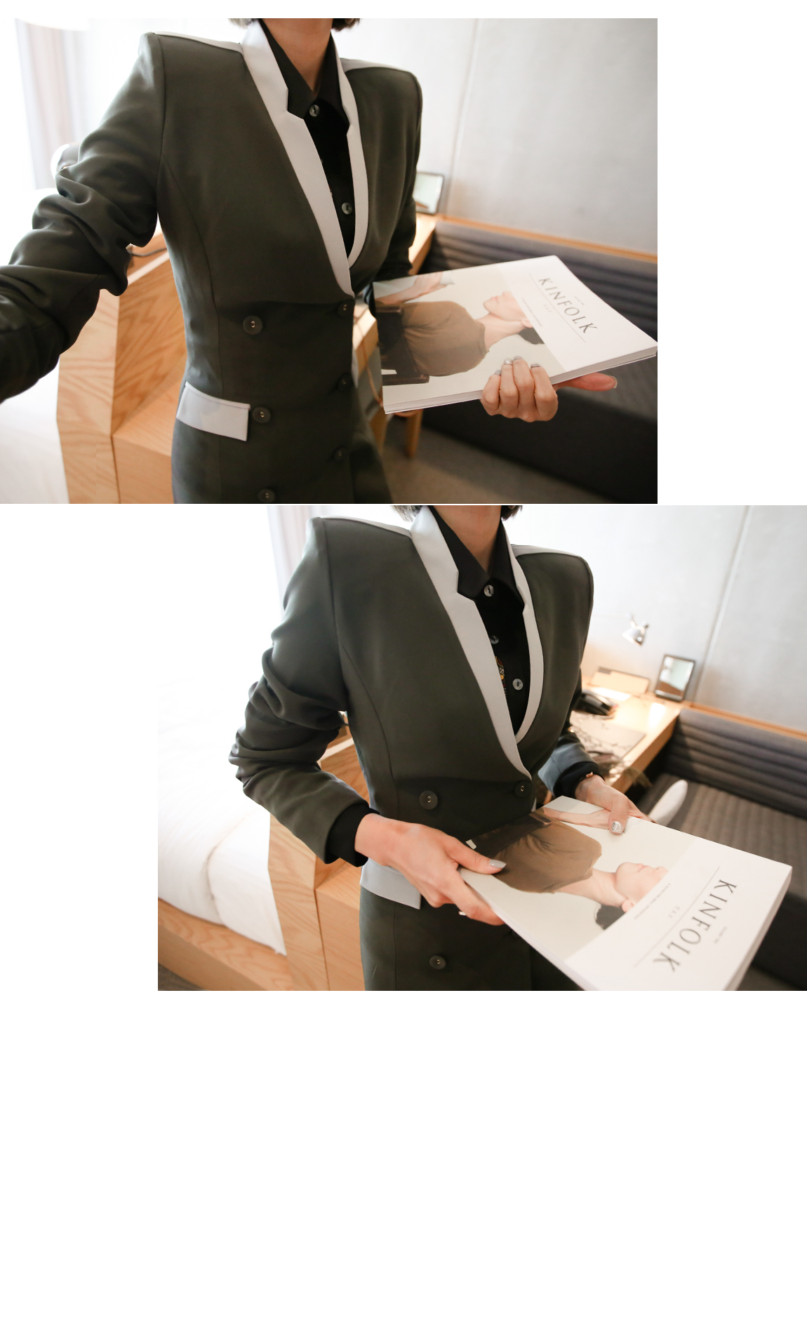 숄더에 패드가 내장되어있어 전체적인 밸런스를 잡아줘요