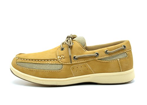 Binding : Apparel Product Description Be comfortable at any occasion with the classic boat shoe! Featuring leather upper, lace up design for a secure hold, and Air-mesh detailing on side for added cool, breathable comfort around the foot. Finished with smooth faux leather Lining, cushioned footbed for comfort, and non-skid rubber outsole. 0