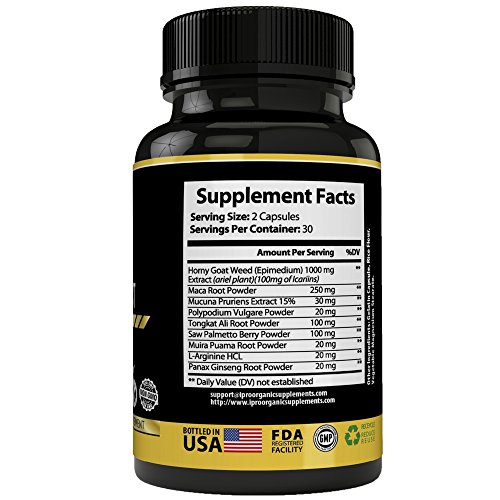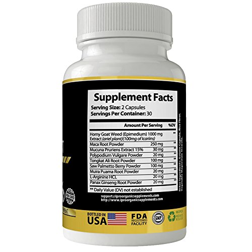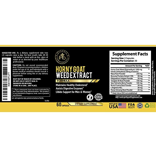 Reinvigorate Your Sexual Health and Stamina with All-Natural Horny Goat Weed for Men and Women Everyone Deserves More Fun and Enjoyment in the Bedroom Restoring Desire, Stamina, and Sexual Health As you age and your body begins to produce less of the hormones essential to good sexual health, you need a boost that helps keep you going. That's why we developed iPro Organic Supplement Horny Goat Weed, a powerful and effective natural supplement that helps fortify your libido, stamina, energy and focus so you can restore your youthful performance in the bedroom. Product Details: • Horny Goat Weed Extract (1000mg) • Natural Herbs and Ingredients • Volume: 90 Capsules • Unisex Support (Men and Women) • Safe, Healthy Support • Made in the USA Natural Support, Real Results A unique combination of herbs, including Tribulus Terrestris, Maca Root, Ginseng, Muira Puama, and the active component of Epimedium (Horny Goat Weed), our formula contains all the essential stamina and performance-enhancing ingredients you need to keep an active sexual life. Designed to boost your energy and enhance your mood and focus, if you're a man or woman looking to revitalize your libido, Horny Goat Weed is the answer. Increase Performance and Personal Confidence A libido complex so effective and supportive that both men and women can take our daily supplement to revitalize their bedroom stamina and performance. Safe, effective, and non-GMO, our vegan-friendly formula is safe for adults who need long-lasting support without the stimulating side effects of pills or short-term boosters. The increased physical performance carries over to your daily activities as well, be it needing to focus more at work, go harder at the gym, or enjoying the outdoors.Feature
