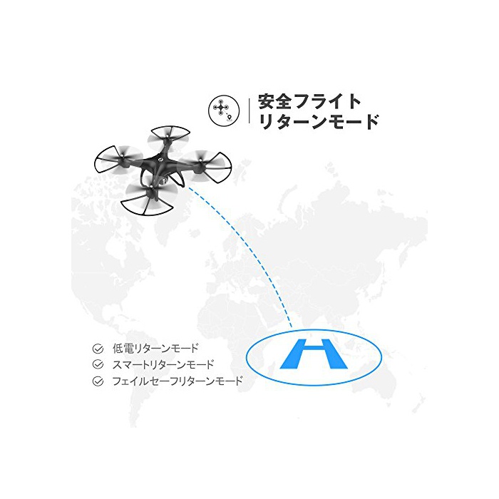 【좌표 메모리 기능에 의한 정확한 리턴】이륙 지점의 좌표를 기억하고, 송신기의 리턴 스위치 하나에 기체가 귀환.세이프티(Safety) 장치로서의 기능도 겸하고, 기체 저 전압과 송신기부터의 전파를 로스트 한 경우에는 자동적으로 이륙 지점까지 되돌아 오(가)게 됩니다.