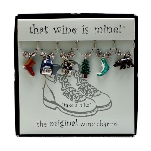 -. Feature : That Wine is Mine, the original wine charms / Unique whimsical charms instantly individualize wine glasses by wrapping a loop around the stem / Sets of six hand cast pewter and hand painted charms / Elegant gift box / Choose from over 70 of different themes: wine country, wedding, girl stuff, tropical, animals, fun & games