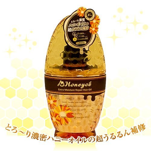 [ハニーチェ エクストラモイスチャーリペア ヘアオイルBY 100ml]は、とろ~り濃密。ハニーオイルの超うるるん補修ヘアオイルです。フェアリーローズハニーの香り。
